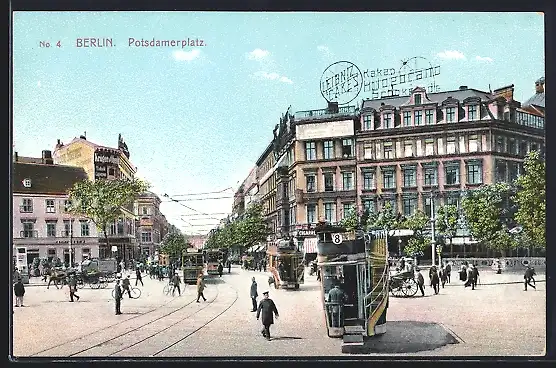 AK Berlin-Tiergarten, Potsdamer Platz, Bus, Strassenbahn