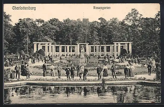 AK Berlin-Tiergarten, Rosengarten mit Statue