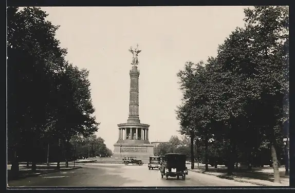 AK Berlin-Tiergarten, Siegessäule mit Oldtimer-Autos
