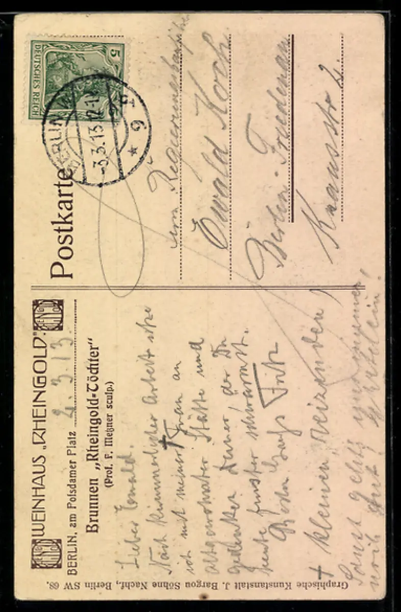 alte Ansichtskarte, gelaufen 1913, Eckknick oben rechts, guter Zustand