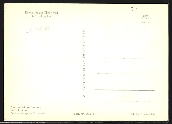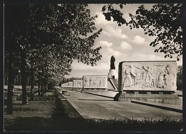 AK Berlin-Treptow, Sowjetisches Ehrenmal, Reliefs und Statue