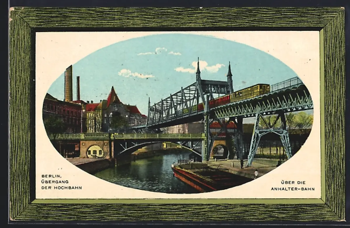 AK Berlin, Übergang der Hochbahn über die Anhalter Bahn, im Rahmen