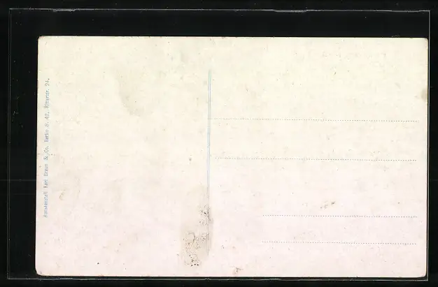 Personenbezogene Daten auf der Rückseite der Karte wurden durch blauen Textmarker unkenntlich gemacht. Die blauen Stellen sind auf die Vorderseite durchgeweicht und wirken sich negativ auf das Postkartenfoto aus