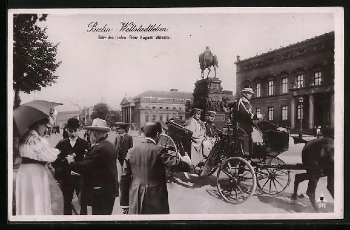 AK Berlin, Weltstadtleben, Unter den Linden, Prinz August Wilhelm in einer Pferdekutsche