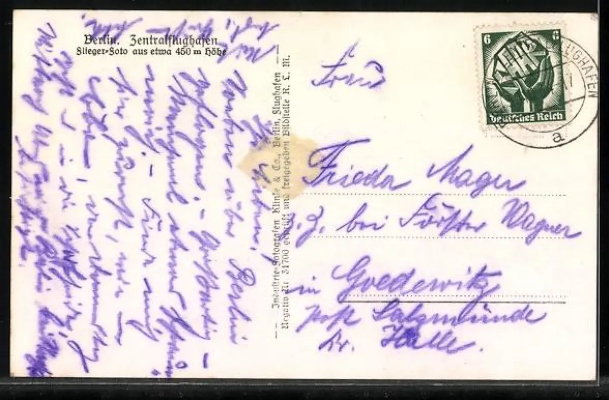 AK Berlin, Zentralflughafen mit Flugfeld und Vorplatz, Fliegeraufnahme