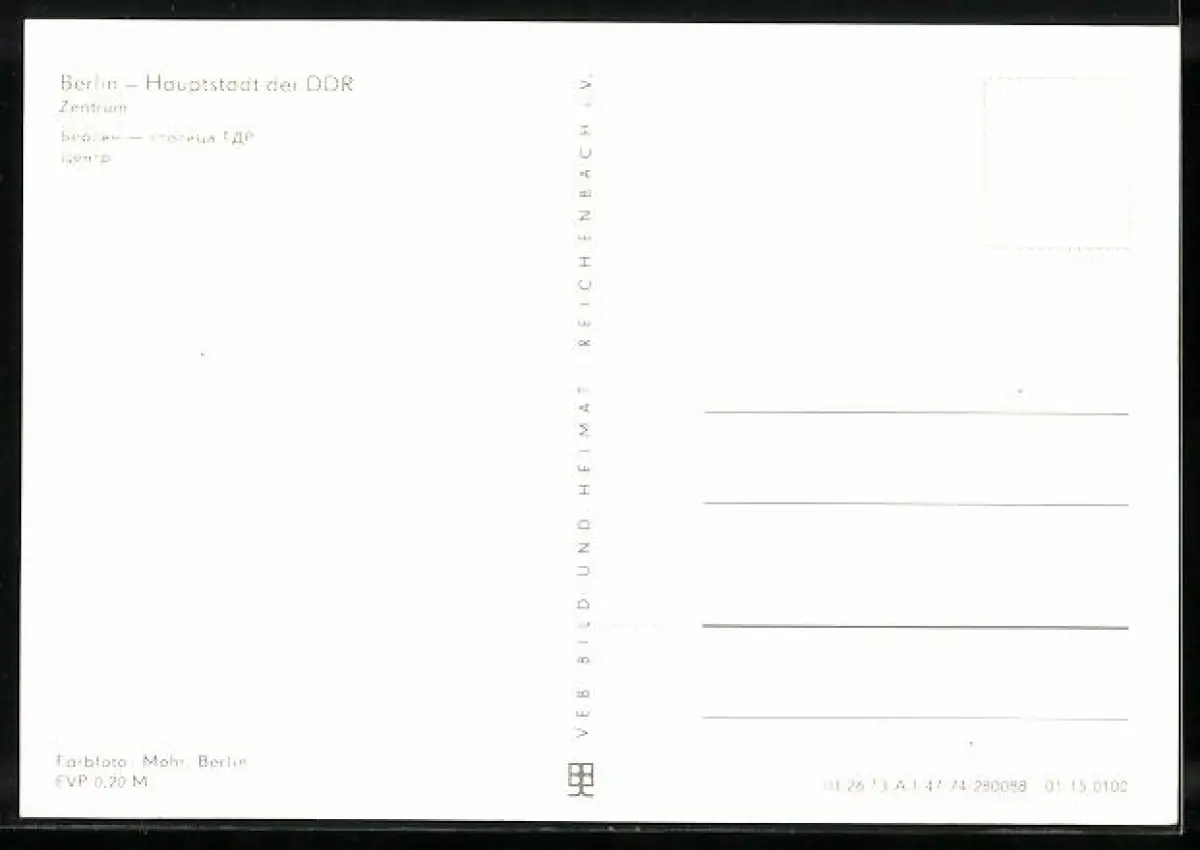 Personenbezogene Daten auf der Rückseite der Karte wurden durch blauen Textmarker unkenntlich gemacht. Die blauen Stellen sind auf die Vorderseite durchgeweicht und wirken sich negativ auf das Postkartenfoto aus