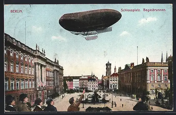 AK Berlin, Zeppelin über Schlossplatz und Begasbrunnen
