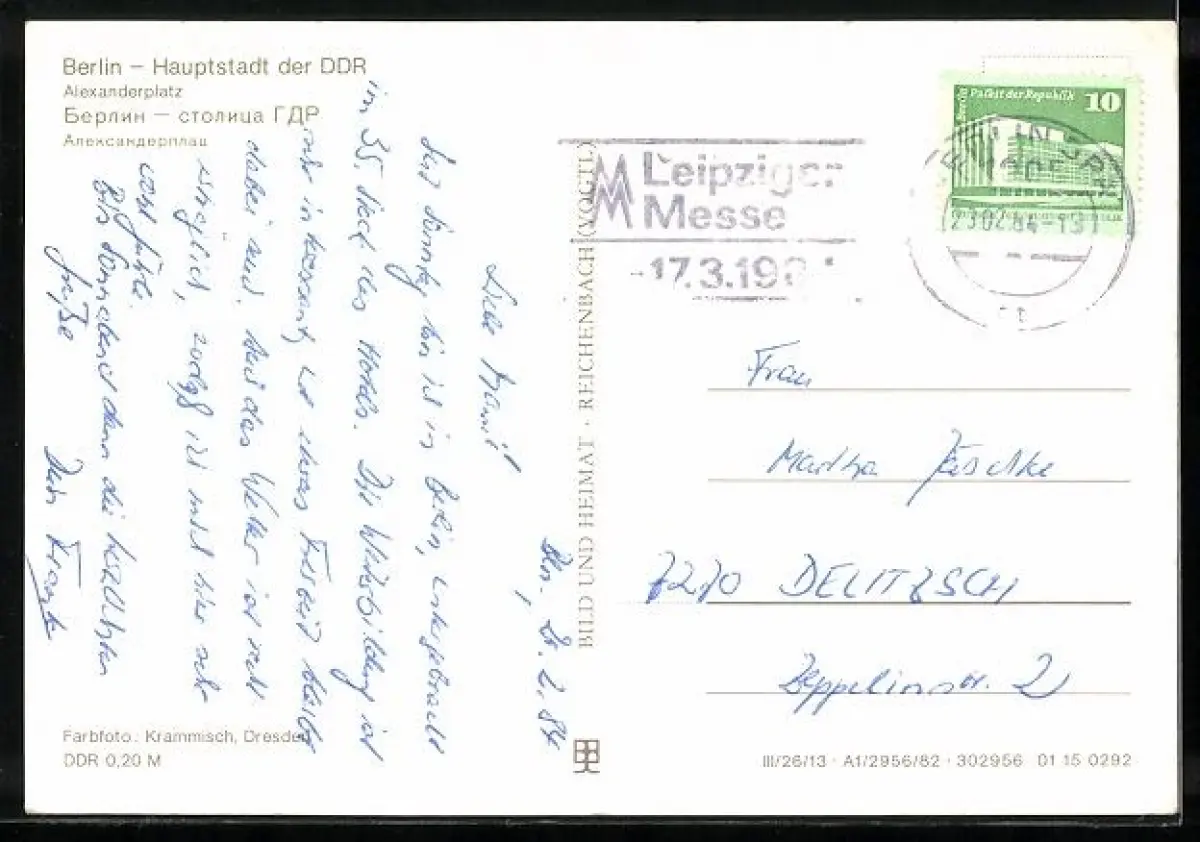 alte Ansichtskarte, gelaufen 1984, Eckknick oben li., guter Zustand