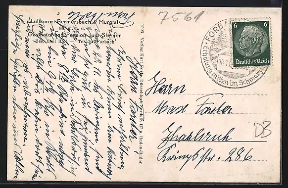 AK Bermersbach /Murgtal, Teilansicht mit Kirche