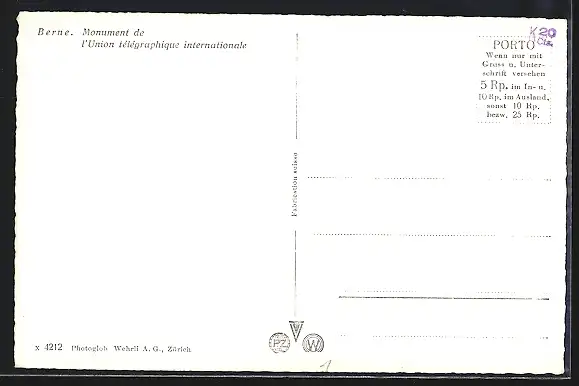 AK Bern, Blick auf das Telegraphendenkmal