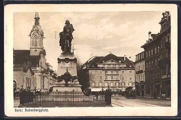 AK Bern, Bubenbergplatz mit Denkmal