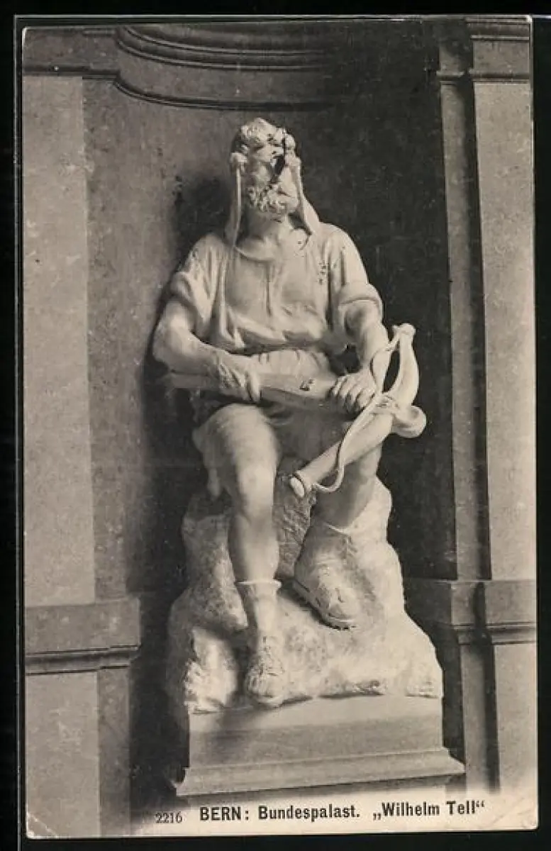 AK Bern, Bundespalast, Statue Wilhelm Tell