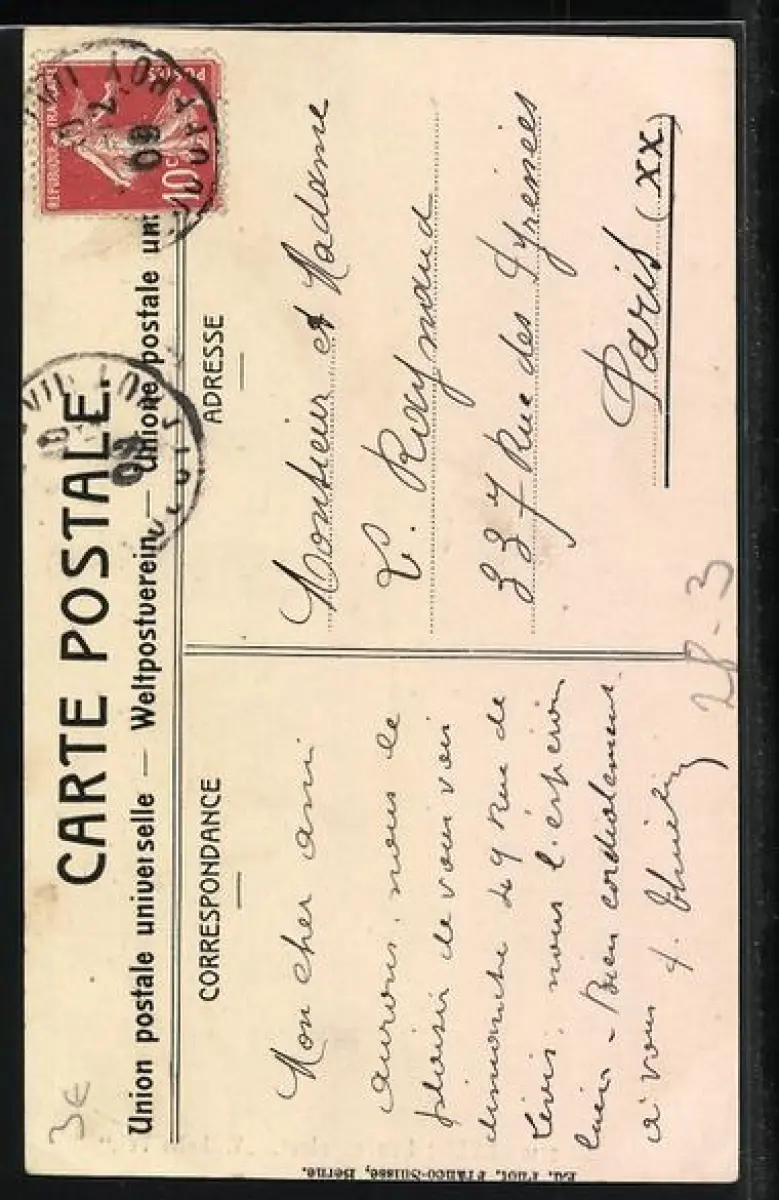 alte Ansichtskarte, gelaufen 1909, Eckknicke unten, Stempelspur, guter Zustand