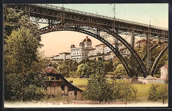 AK Bern, Kirchenfeldbrücke und Bundespalast