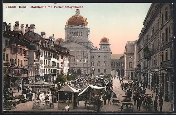 AK Bern, Markttag vor dem Parlamentsgebäude