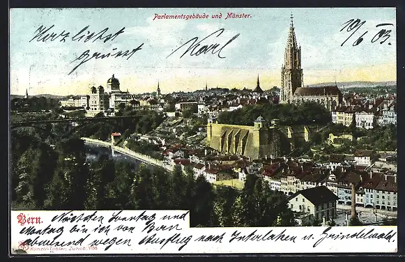 AK Bern, Parlamentsgebäude und Münster, um 1900