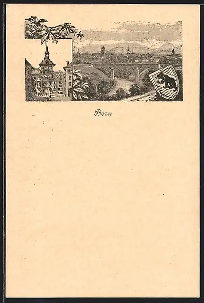 AK Bern, Partie am Uhrturm, Totalansicht, Stadtwappen