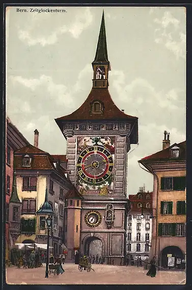 AK Bern, Passanten vorm Zeitglockenturm