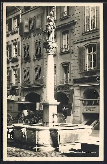 AK Bern, Seilerbrunnen vor der Samenhandlung G. R. Vatter