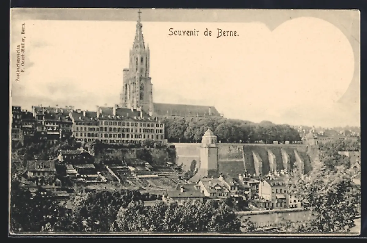 AK Bern, Teilansicht mit Festungsmauer und Kirche