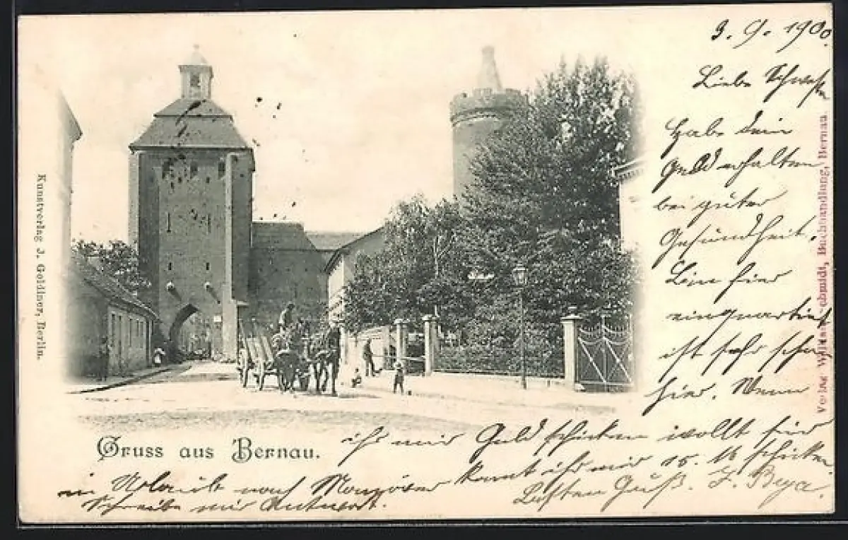 AK Bernau / Mark, Steintor, Turm, Strassenansicht
