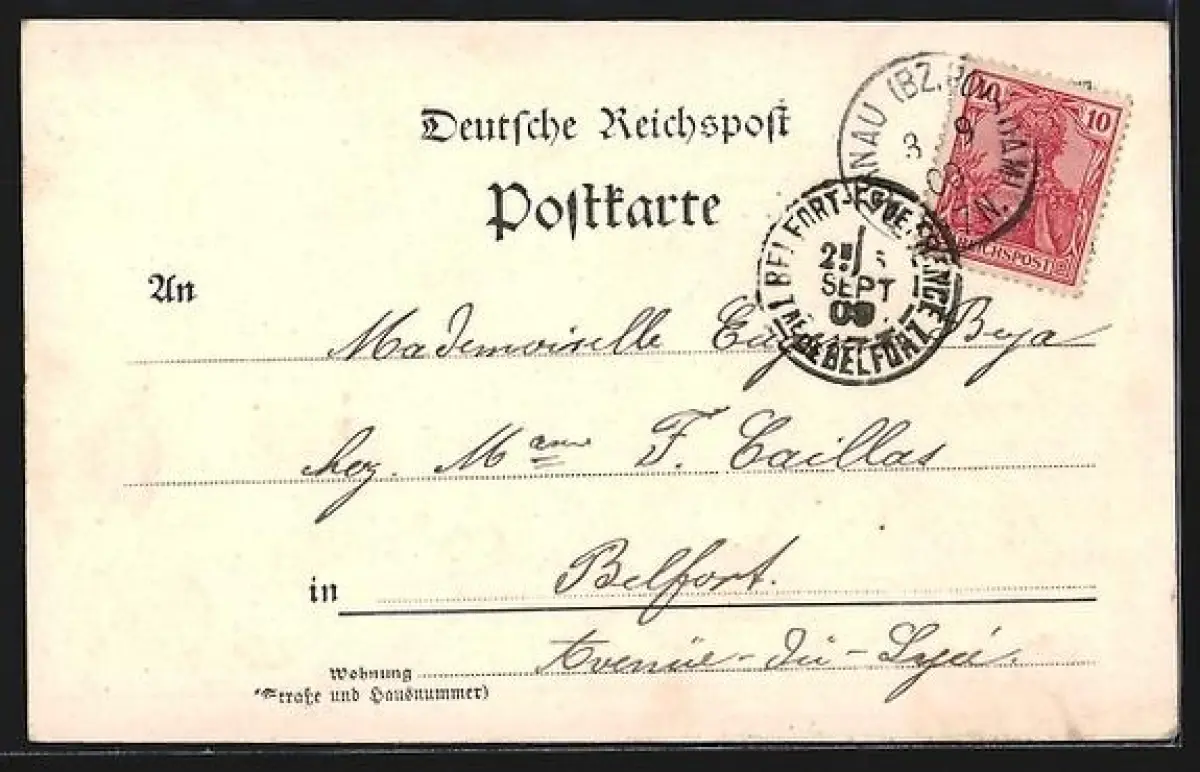 alte Ansichtskarte, gelaufen 1900, guter Zustand