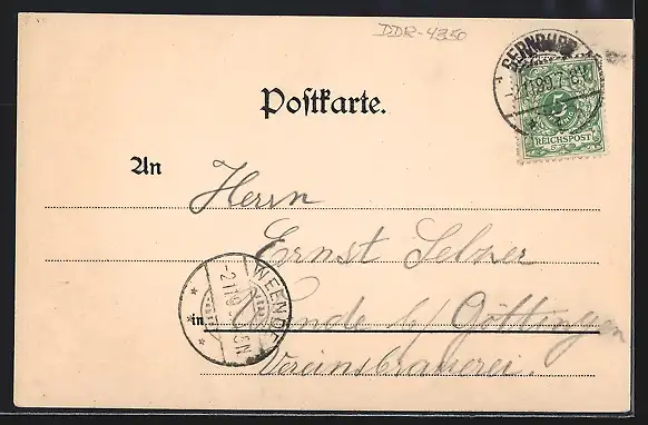 alte Ansichtskarte, gelaufen 1899, guter Zustand