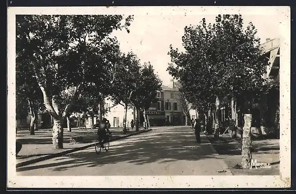 AK Berre-l`Étang, Place de la Mairie avec cycliste et arbres alignés