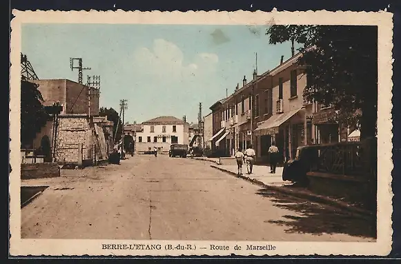 AK Berre-l`Étang, Route de Marseille avec bâtiments et passants