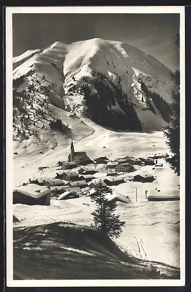 AK Berwang, Ortsansicht im Winter, Blick gegen Hönig