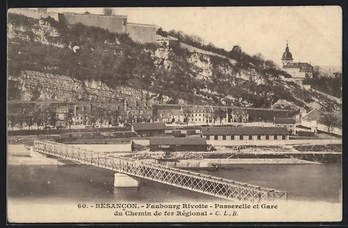 AK Besancon, Faubourg Rivotte, Passerelle et Gare du Chemin de fer Régional