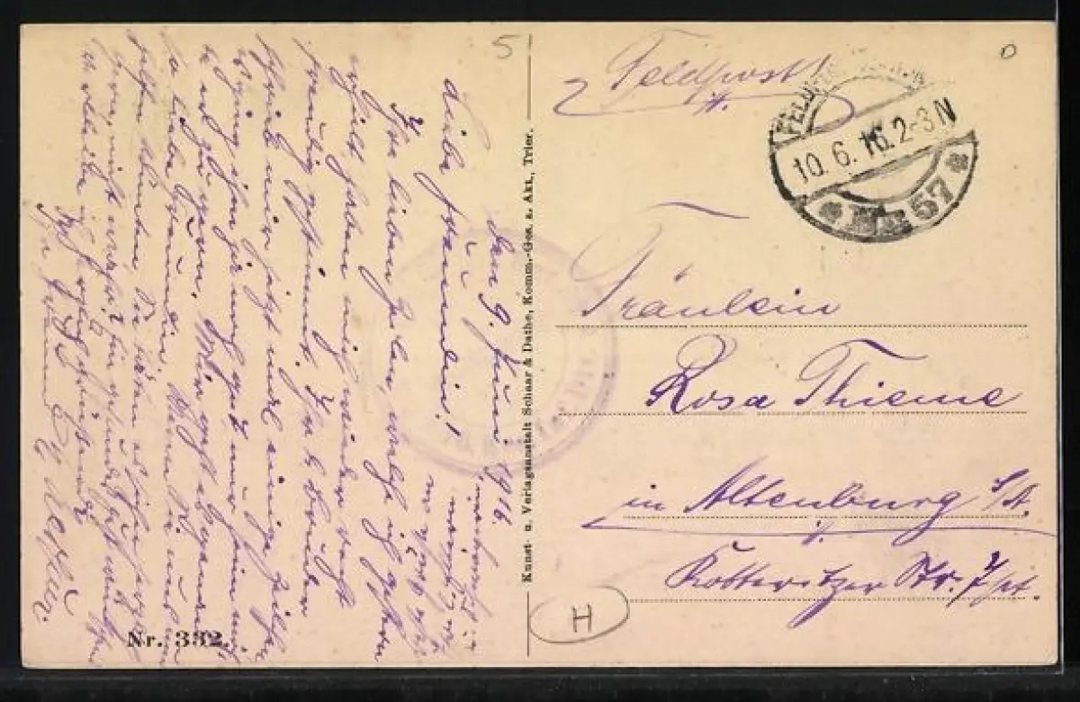 alte Ansichtskarte, gelaufen 1916, Stempelspur, guter Zustand