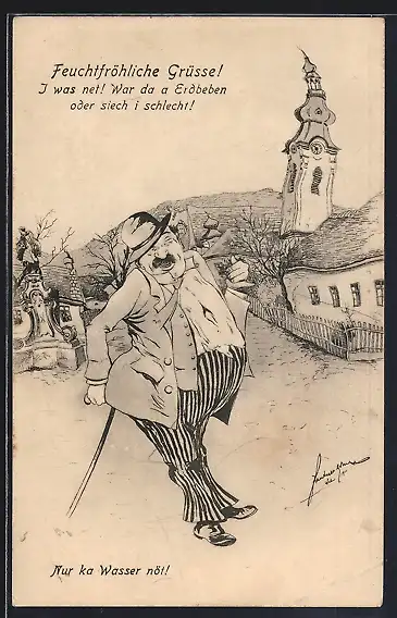 AK Betrunkener Mann sieht die Ortschaft verschwommen