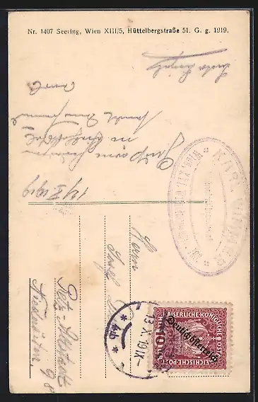 alte Ansichtskarte, gelaufen 1919, Eckknick re. oben, guter Zustand