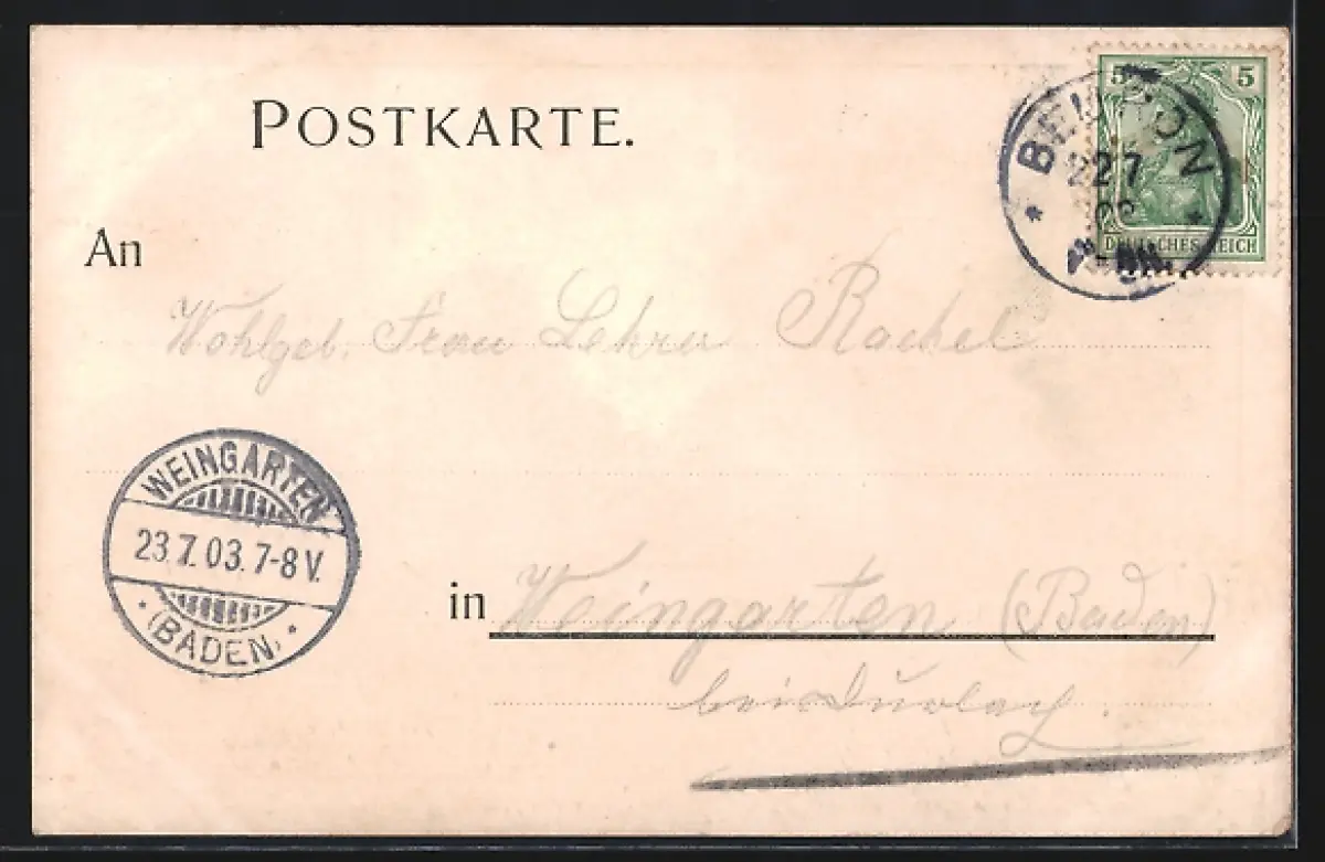 alte Ansichtskarte, gelaufen 1903, Eckknicke li., Albumspuren, guter Zustand