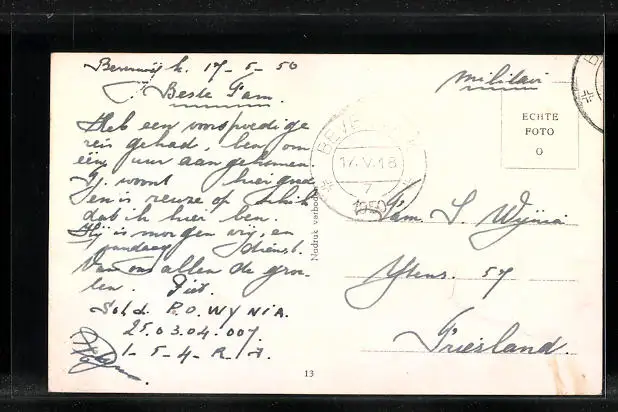 alte Ansichtskarte, gelaufen 1950 als Feldpost, guter Zustand