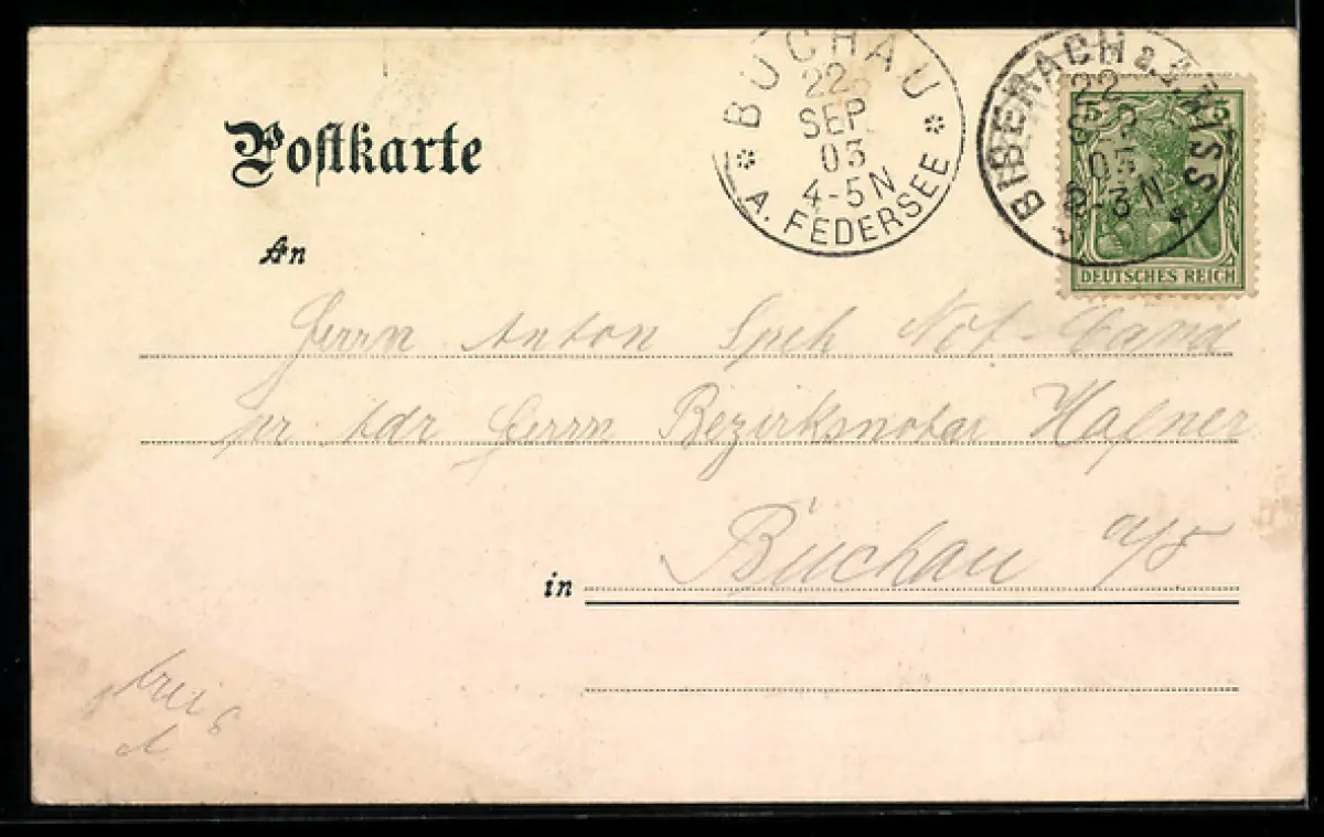 gelaufen 1903, deutlicher Eckknick rechts unten, guter Zustand