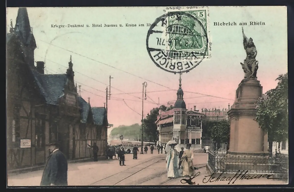 AK Biebrich am Rhein, Hotel Nassau und Krone, Krieger-Denkmal
