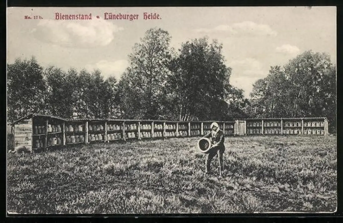 AK Bienenstand in der Lüneburger Heide, Imker bei der Arbeit