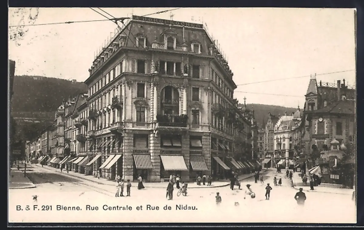 AK Bienne, Rue Centrale et Rue de Nidau, Strassenpartien