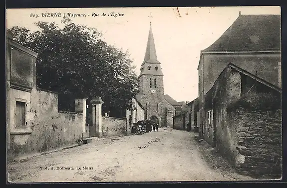AK Bierne, Rue de l`Église, Strassenpartie