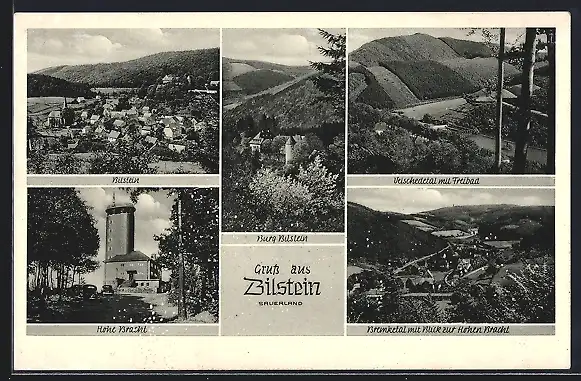 AK Bilstein /Sauerland, Hohe Bracht, Veischedetal mit Freibad, Ortsansicht