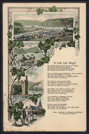 AK Bingen / Rhein, Gesamtansicht, am Turm, die Kirche, Weinreben