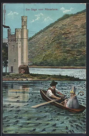 AK Bingen, Ruderboot am Mäuseturm