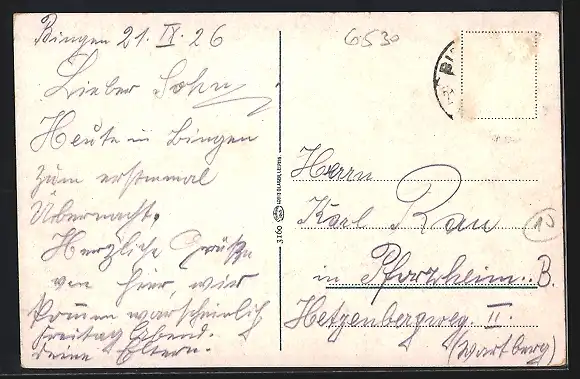 alte Ansichtskarte, gelaufen 1926, Briefmarke entfernt, rückseitig Oberflächenschaden, guter Zustand