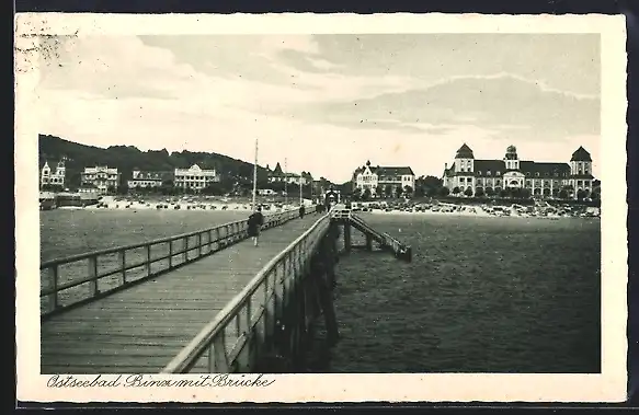 AK Binz, Blick auf den Strand von der Seebrücke aus
