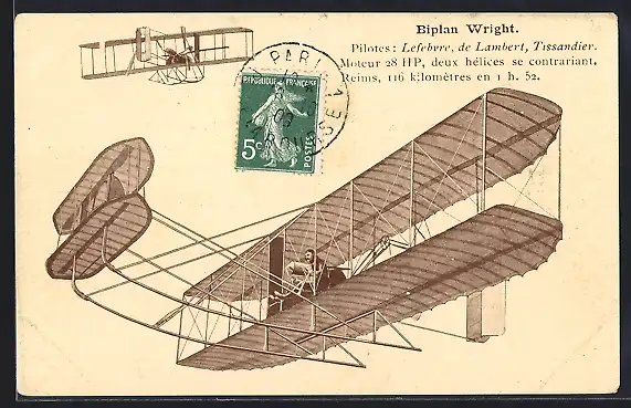 AK Biplan Wright, Pilotes Lefebvre, de Lambert, Tissandier, Flugzeug