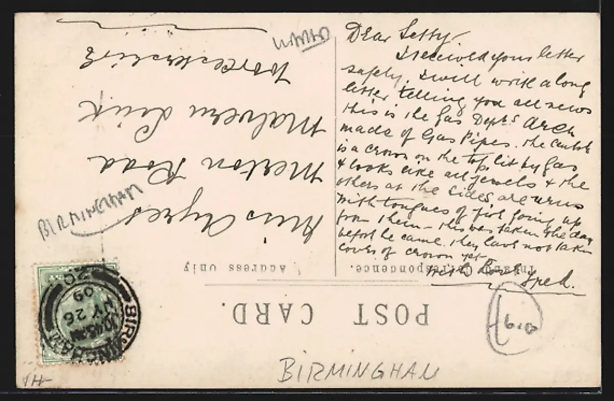 AK Birmingham, The Royal Visit Decorations, July 7th 1909, Colmore Row, Arch