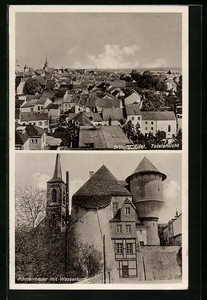 AK Bitburg i. Eifel, Totalansicht, Römermauer m. Wasserturm
