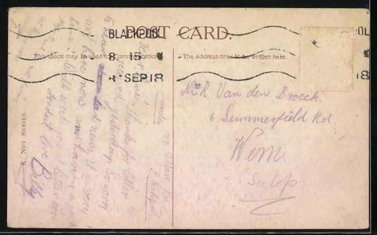 alte Ansichtskarte, gelaufen, Briefmarke entfernt, guter Zustand